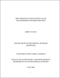 Boon, Yi Jean (2024) How artificial intelligence (AI) is transforming tourism industry. Final Year Project, UTAR.