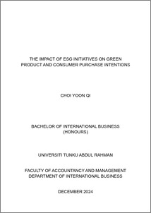 Choi , Yoon Qi (2024) The impact of ESG initiatives on green product and consumer purchase intentions. Final Year Project, UTAR.