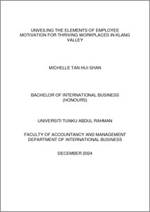 Tan, Michelle Hui Shan (2024) Unveiling the element of employee motivation for thriving workplaces in Klang Valley. Final Year Project, UTAR.