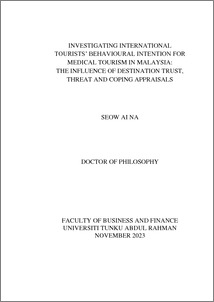 Seow, Ai Na (2023) Investigating international tourists’ behavioural intention for medical tourism in Malaysia: The influence of destination trust, threat and coping appraisals. PhD thesis, UTAR.